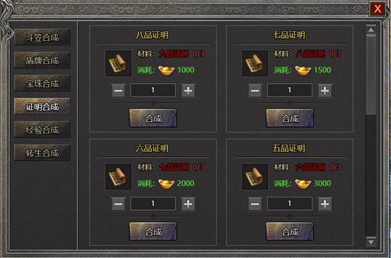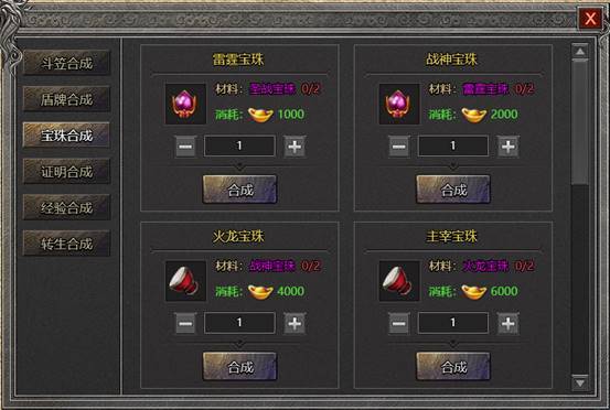 1. 可通过消耗合成材料、货币将低级证明合成升级为高级宝珠