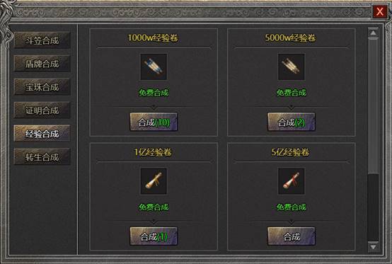 2. 经验卷合成无需消耗,免费合成