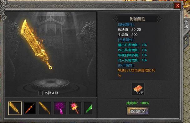 2. 时装激活:时装激活需要消耗道具、灵符等道具,时装激活有成功率,激活失败将扣除消耗道具;
